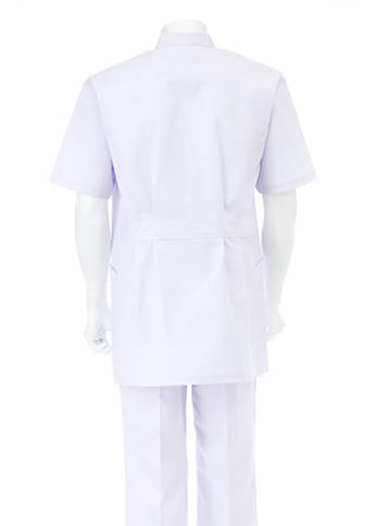 横掛けスタイルは、医療に携わる人のユニフォームとしての象徴です。普遍的でかわらないスタイルは、患者に安心感を与えます。前ボタン明きの横掛スタイルです。いつの時代にも通用する横掛のシンボルです。