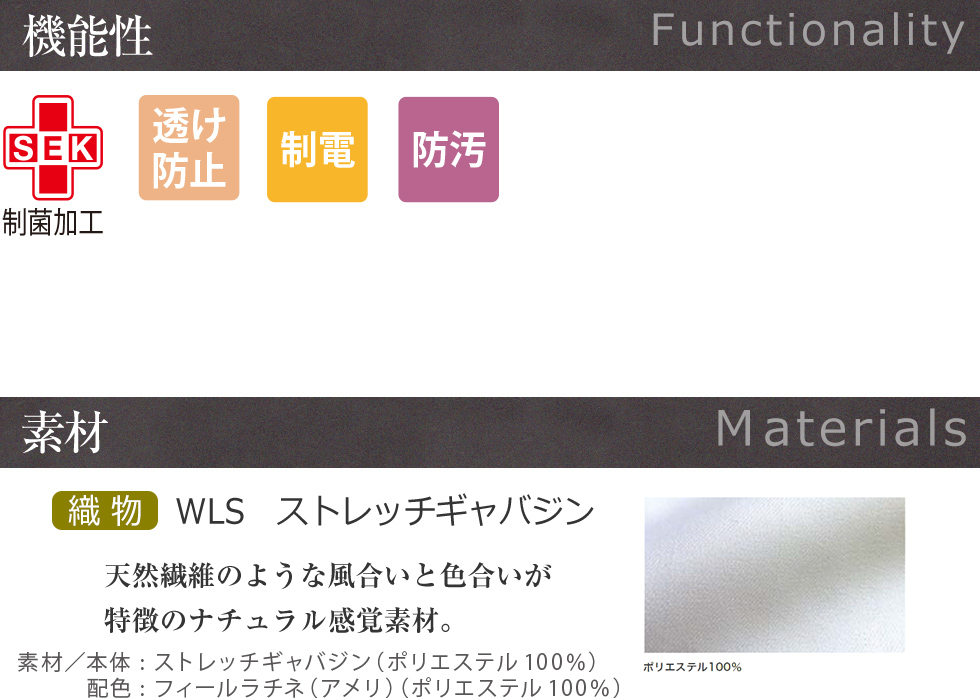 - 織物 WLS ストレッチギャバジン(ポリエステル100%)