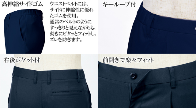 工業洗濯OK、吸汗速乾、ストレッチ、帯電防止、制菌